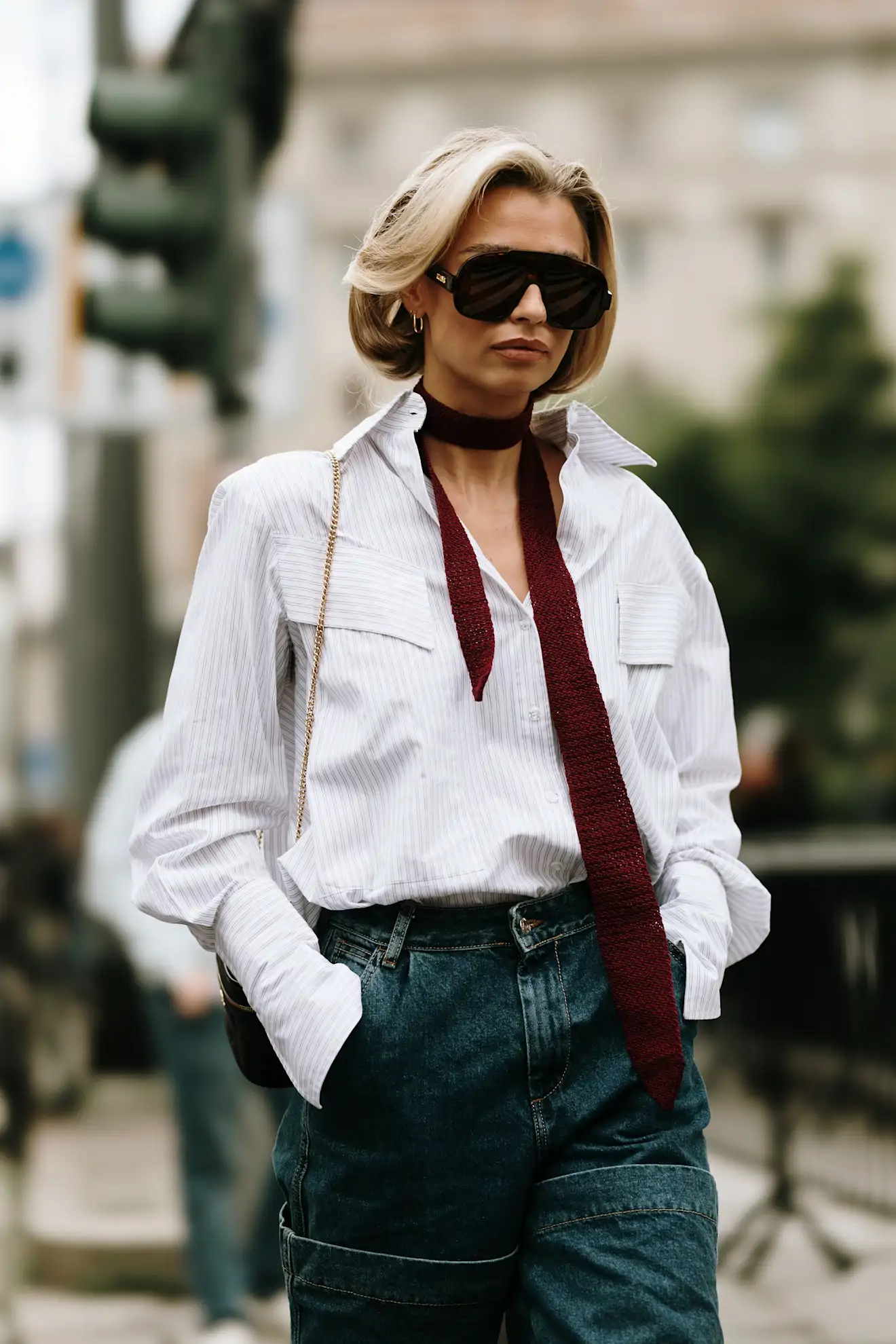 Las camisas blancas se reinterpretan en versiones oversize, fluidas o ligeramente desestructuradas, logrando un efecto effortless pero chic.